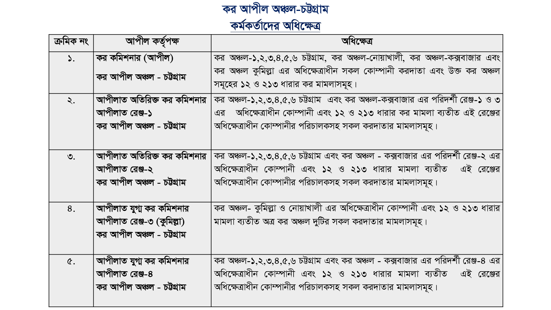 কর কমিশনার (আপীল) এর কার্যালয়, কর আপীল অঞ্চল, চট্টগ্রাম।